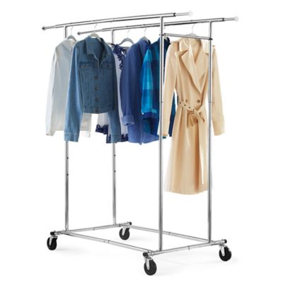 Chrome steel bar Sturdy tubular bottom shelf Whitmor introduces a new 2 bar adjustable garment rack for a space saving solution to crowded closets, laundry room needs, or seasonal garment storage. ... View Video